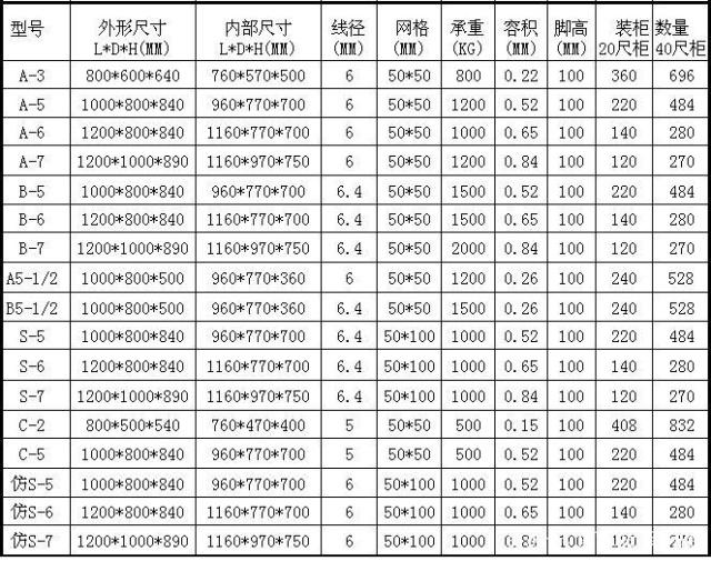 倉(cāng)儲(chǔ)籠規(guī)格現(xiàn)在主要是根據(jù)標(biāo)準(zhǔn)的托盤尺寸來(lái)延伸而來(lái)的,尺寸主要有 1200*1000*890 ,1000*800*840及800*600*640 3大主流尺寸結(jié)構(gòu)。南京倉(cāng)儲(chǔ)籠分別叫 A-7 ,A-5,A-3 倉(cāng)儲(chǔ)籠尺寸。